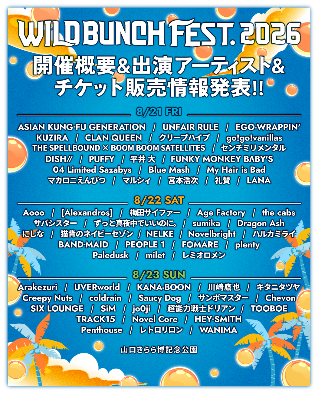 開催概要発表!! 出演アーティスト発表!! チケットオフィシャル最速先行販売開始!!