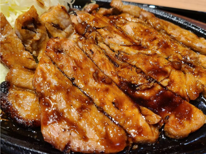 山口県の90%以上をシェアする「鹿野高原豚」の肩ロース肉を使ったトンテキです。自家製焼肉のタレと甘辛タレをミックスしてで味付けをしました。ビールのつまみに最適です。