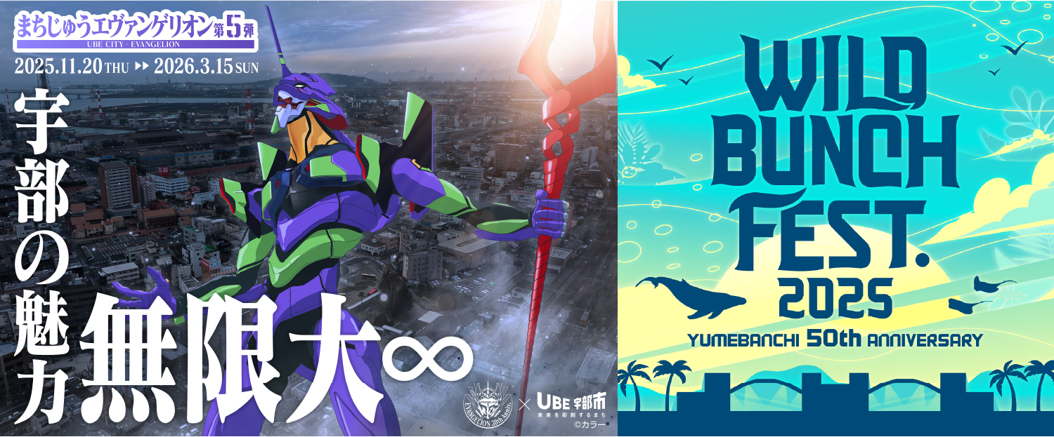 宇部市出身のクリエイター・庵野秀明氏が手掛けた作品の1つである『エヴァンゲリオン』シリーズに関連したイベントとして、宇部市では2021年から毎年「まちじゅうエヴァンゲリオン」を開催しています。ぜひ会場でお楽しみください!