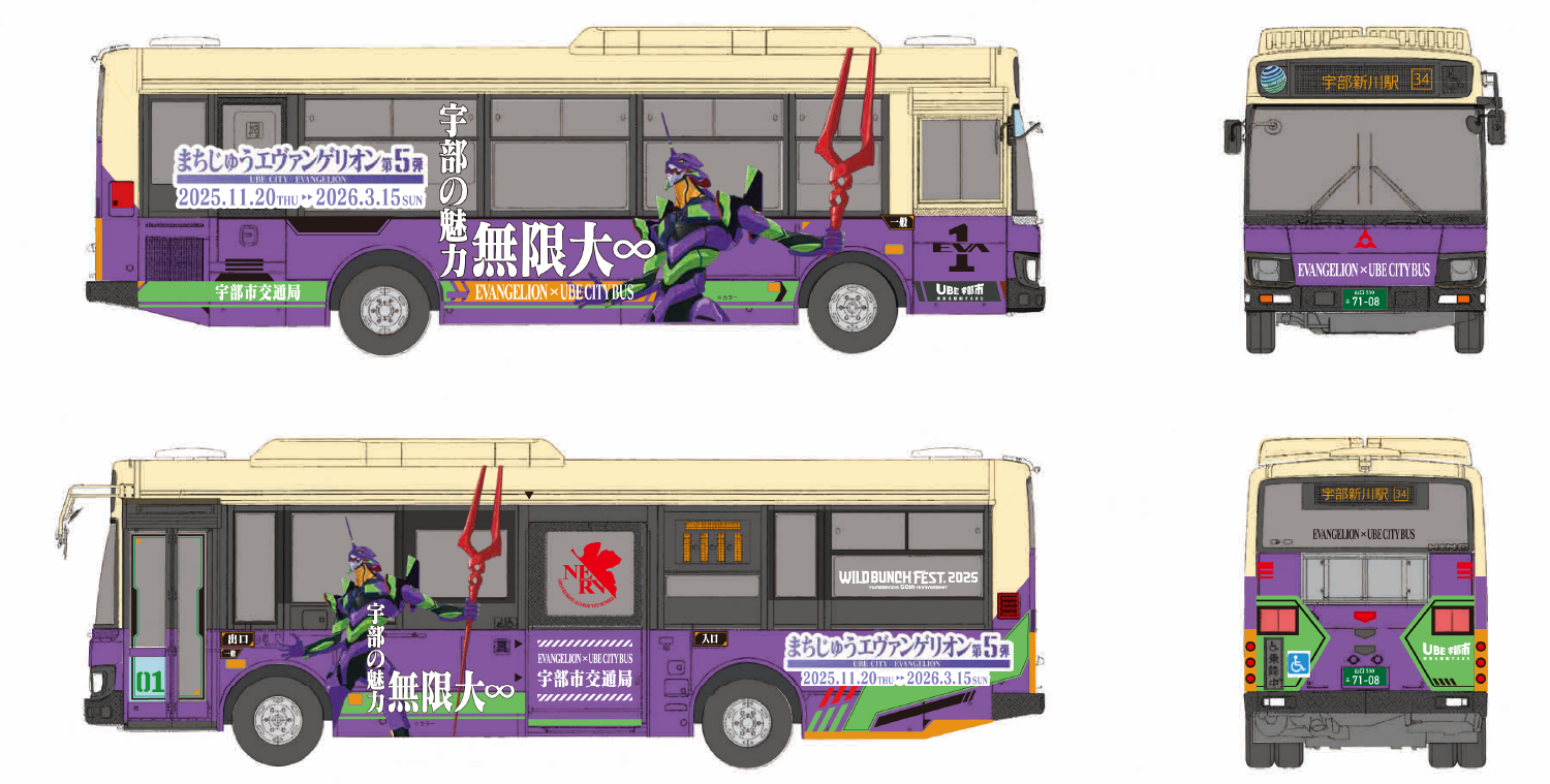 ワイルドバンチフェス終了後は、路線バスとして使用され、「まちじゅうエヴァンゲリオン」終了日の3月15日まで、主に宇部市内(山口市、山陽小野田市も含む)を運行します。