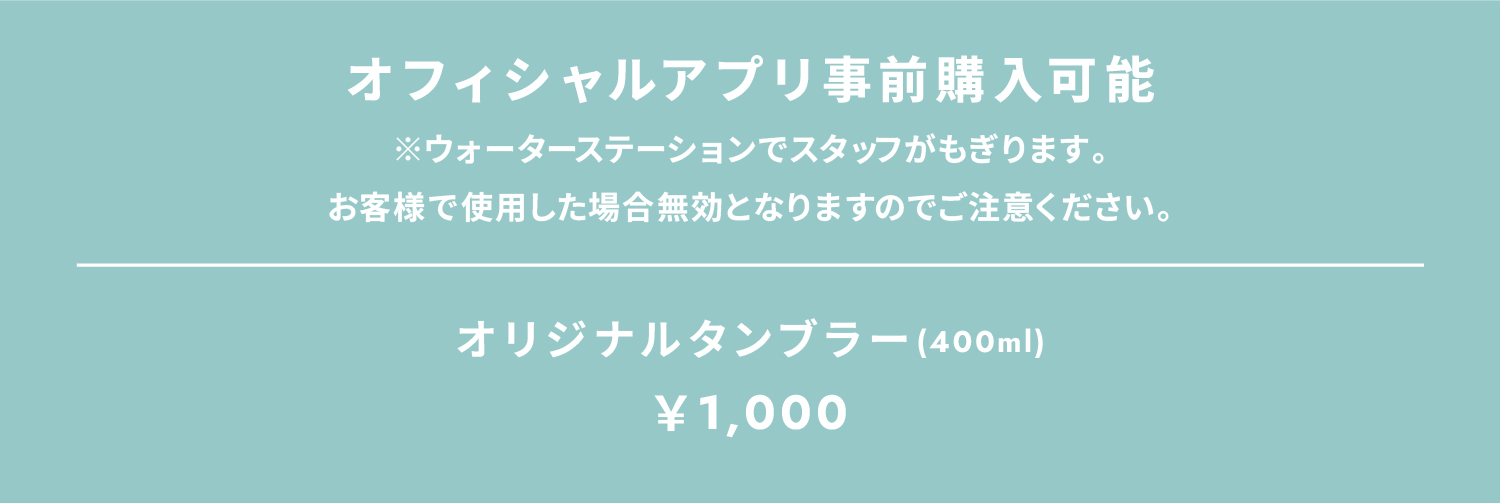 オリジナルタンブラーをご購入いただいた方に限り、当日会場の給水ポイント