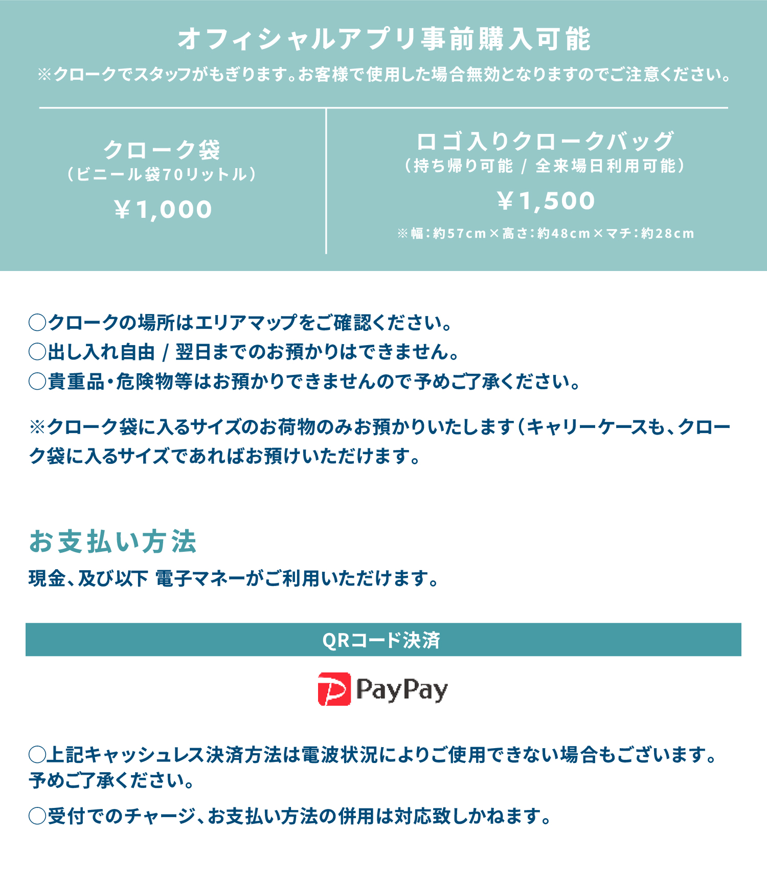 クロークのご案内!!